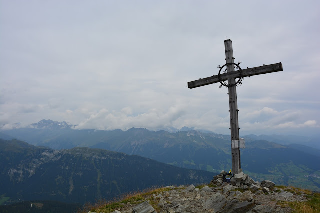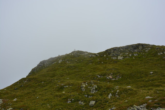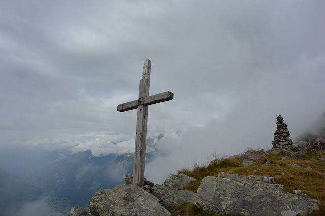 | Croce di vetta del Fasnachter 2268 m con ometto di pietra. |