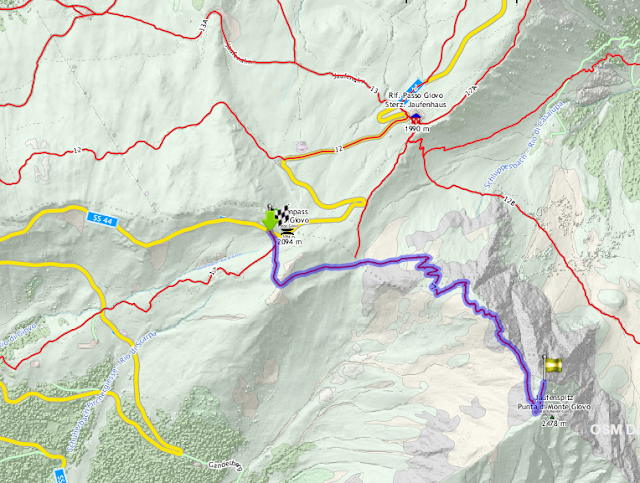 | Panoramica verso Passo Giovo (Jaufenpass) e Punta di Monte Giovo (Jaufenspitze) 2480 m slm |